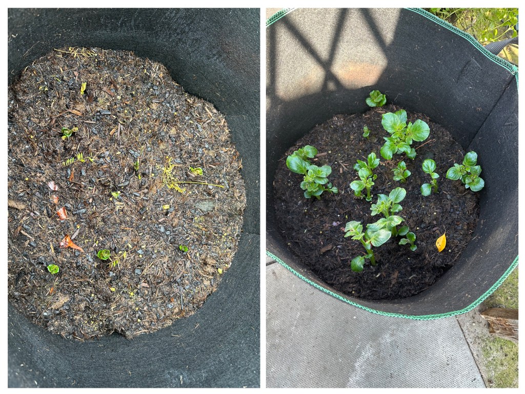 The Casablanca potatoes are about to flower. They are “Earlies” so do produce a crop sooner, but wow 😯! I’ve never had flowers this early before! Theoretically, I could start harvesting new potatoes as soon as they flower, but I might just leave them a bit longer to get a wee bit bigger! Hmm 🤔, maybe not!
