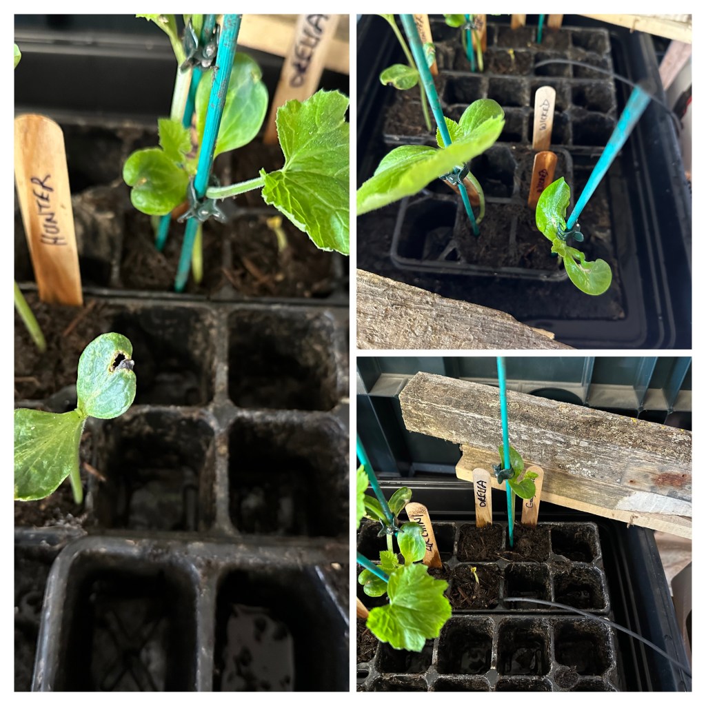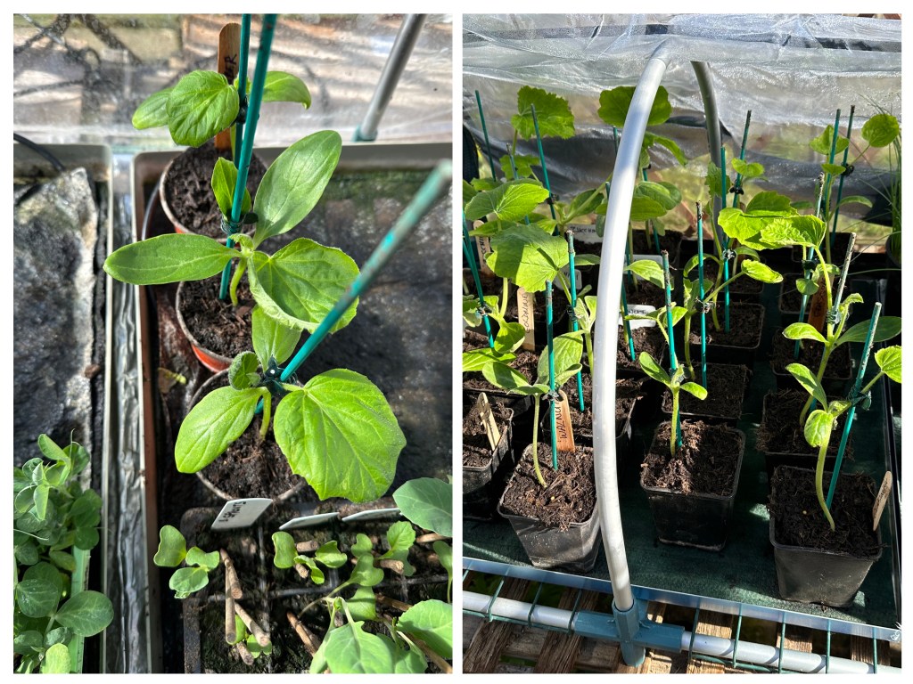 Butternut (Walnut), yes again! Two reasons: Butternuts do not tend to grow well outside here in the North of Scotland, so I grow them all inside. And, secondly, the other variety which I usually grow has failed to germinate this year 😬. To the right of the butternut, in the corner, is Pumpkin (Jack of all Trades). I have done well with Pumpkins outside in previous years. So I have planned for the vast majority of them to be outside this year, keeping more of my precious greenhouse space for the butternut. Hope I don’t regret this decision.