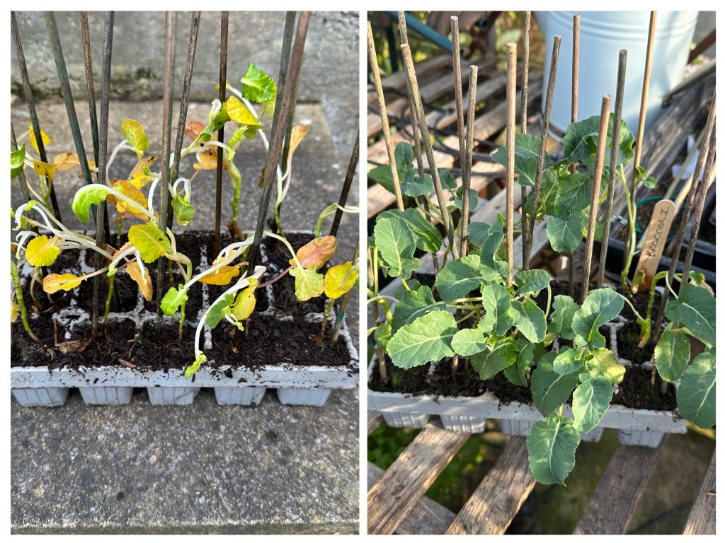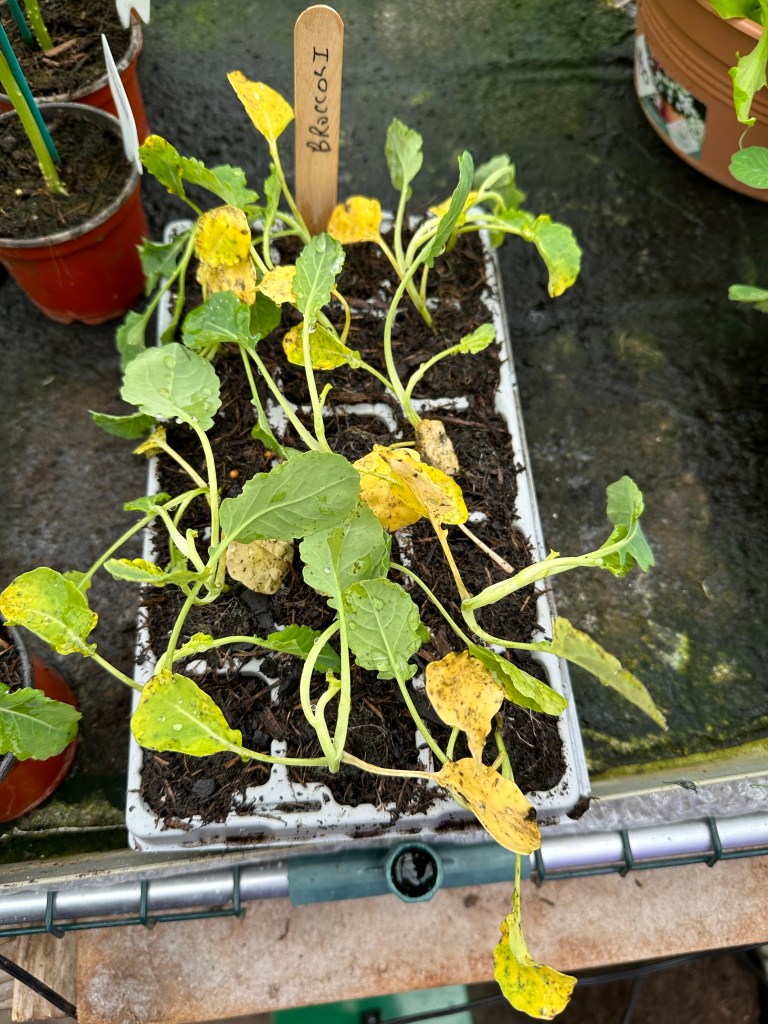 The second planting of broccoli plug plants have now arrived in the post. They look almost as bad as the first lot did when they arrived. I have potted them up into a tray and they will, I am sure, take off in no time and be looking nice and healthy.