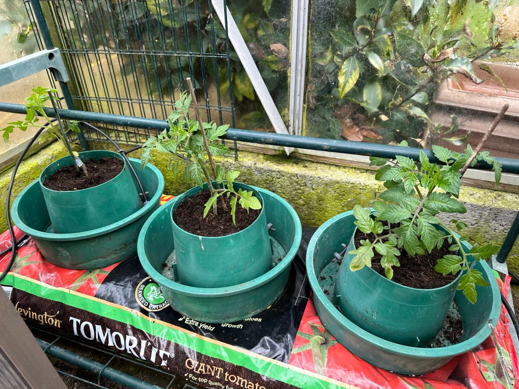 I’m busy setting up my irrigation system in the greenhouse. You can see the pipes and drip feeders going into the watering areas of the pots. It is not yet connected up as it’s still quite cold, especially at night. This risks the pipes outside the greenhouse freezing up at night and bursting. I will wait until it is a bit warmer before connecting it all up. Maybe next week 🤞!