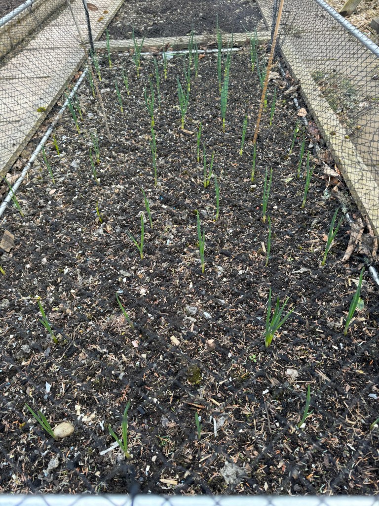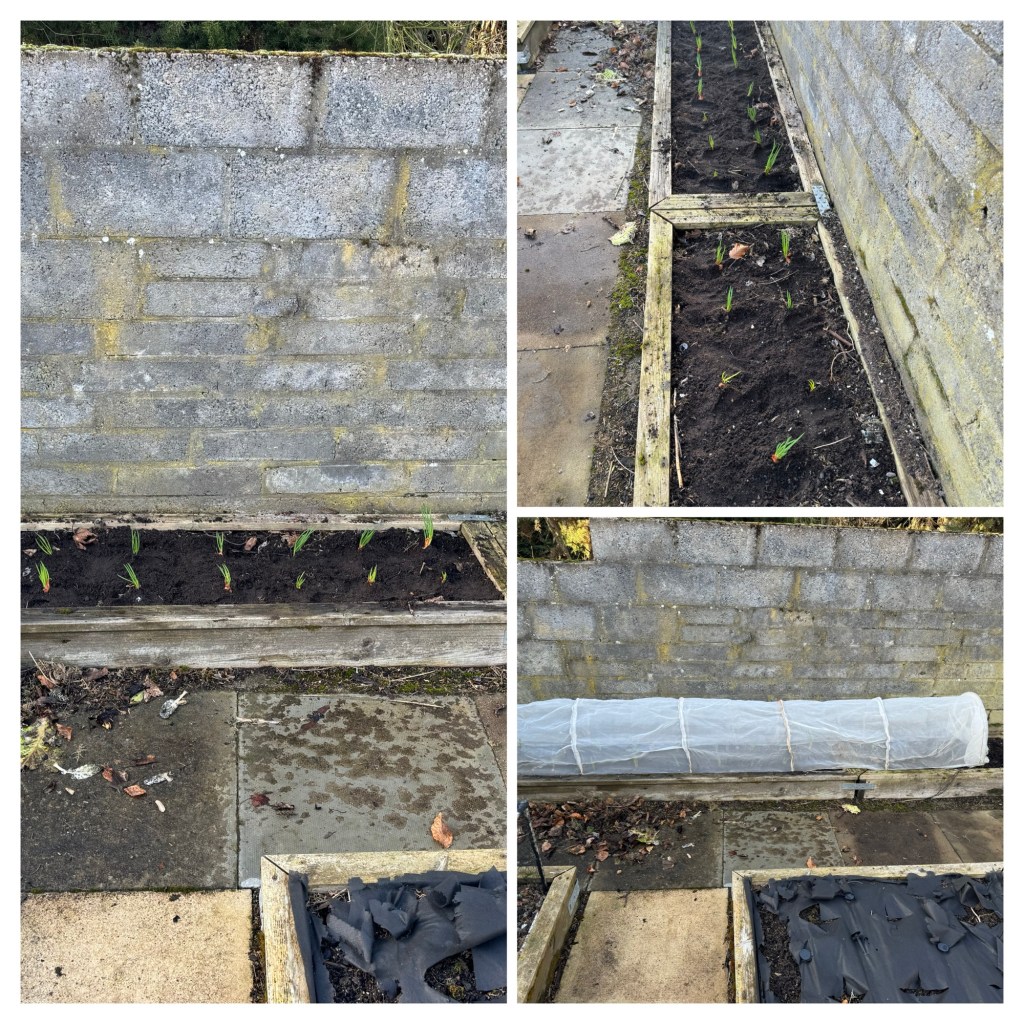 The salad lettuce seed tape and carrots which I planted at the same time are looking good. We will soon be able to start harvesting the lettuce 😊. There are also a few spring onions growing, but not as many as I would have liked.