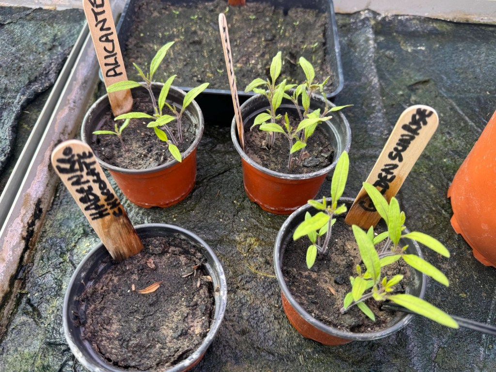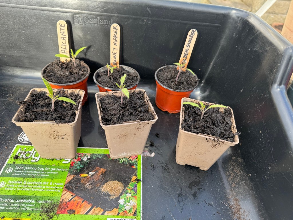 The three lots of tomato seeds which I received in my Christmas Advent Calendar had sprouted before my last posting 😊. They were thinned out and continue to grow well.