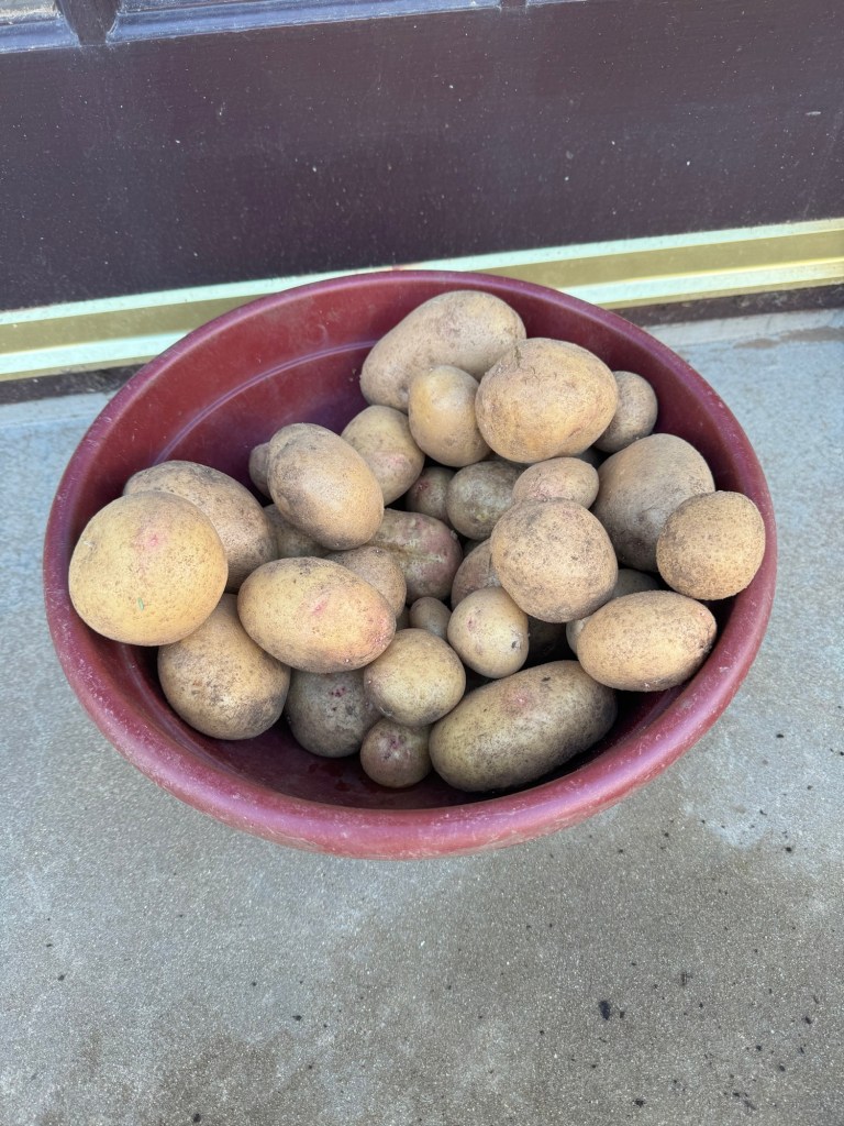 Firstly, a harvest of last year’s Potatoes (Picasso) – still looking great, despite being in the ground all winter!
