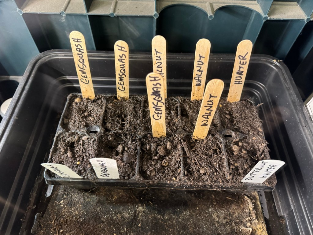 Butternut (Walnut) and (Hunter): I grew these two varieties last year. After struggling with my butternut crop for several years, last year saw a nice crop of butternuts from within the greenhouse. So I am going to try these two varieties again and hope for the same result!
