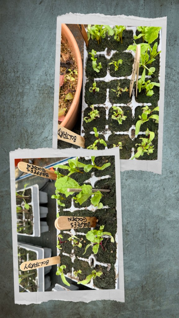 Beetroot – Boltary (red) and Burpees Golden (yellow) have been sown directly into the soil in the Veggie Garden / Allotment. (Left)