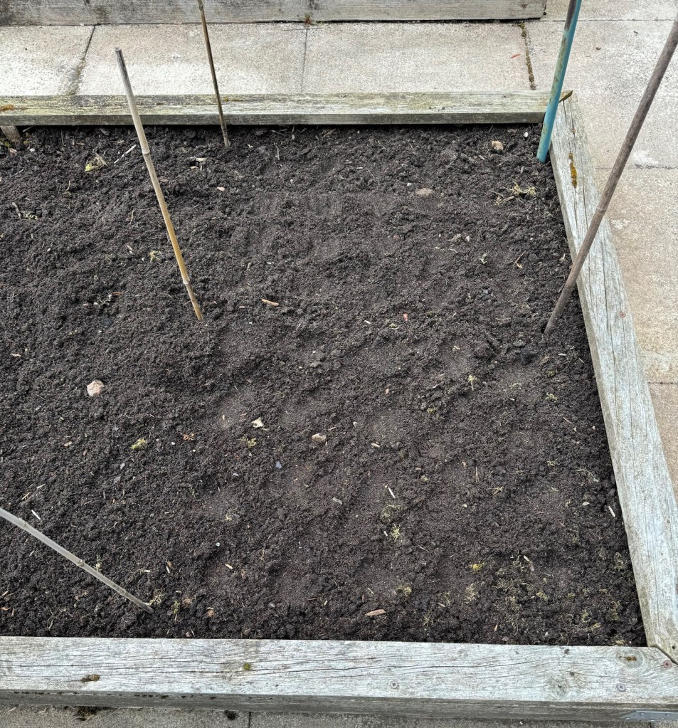 A second planting will be sown on the other side of the bed in about a month’s time. This will hopefully give us a nice harvest of peas over a longer period.