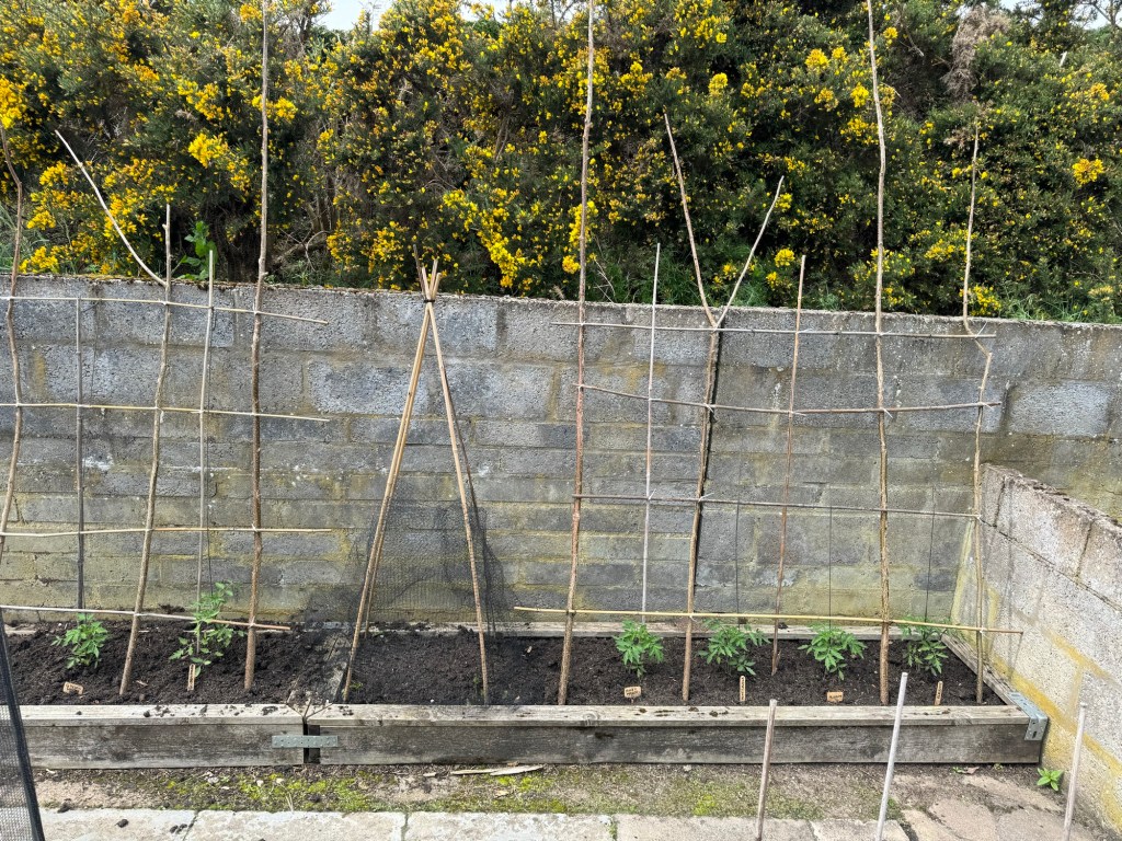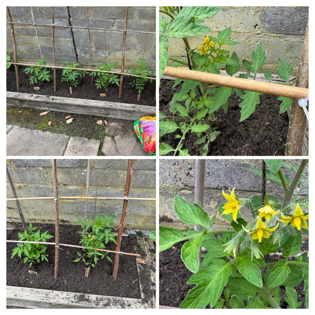 The tomatoes, from the Advent Calendar, were planted out last week into the Veggie Garden / Allotment.
