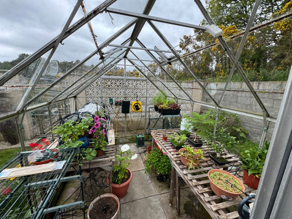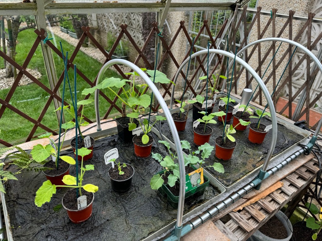 I have started potting up those which will remain in the greenhouse into bigger pots and have placed them into their final positions within the greenhouse.