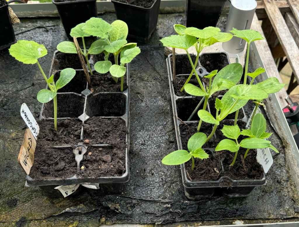 I hope you noticed all of the space that these wee plants have on the trays. This is because all of the first sowing of squashes have now been planted out into the Veggie Garden / Allotment (see later).