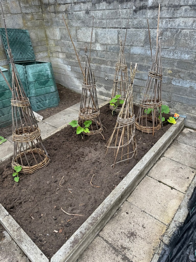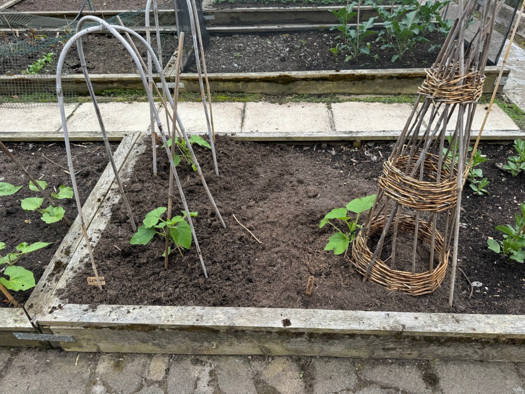 Three of the Gemsquash were planted out into their final places in the Veggie Garden / Allotment at the beginning of this week.