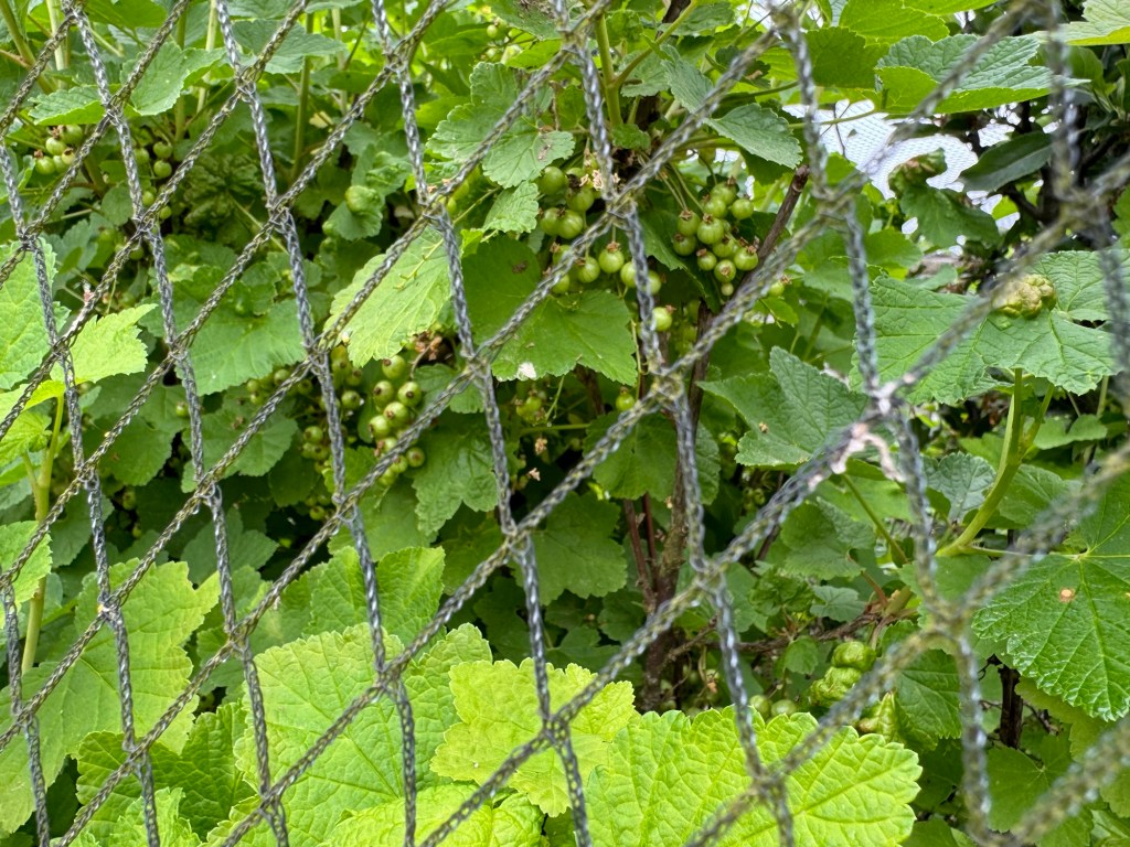 The Redcurrants have lots of fruit forming. The fruits are now very obvious. (left)….