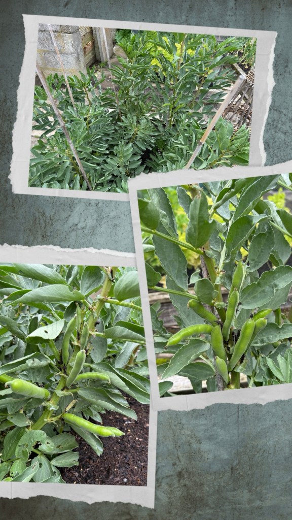 The Broadbeans – Sutton are also looking good. The broadbeans are forming and we have had some of them for dinner already. They are soooo delicious when young and tender like this.