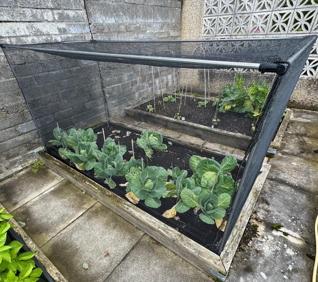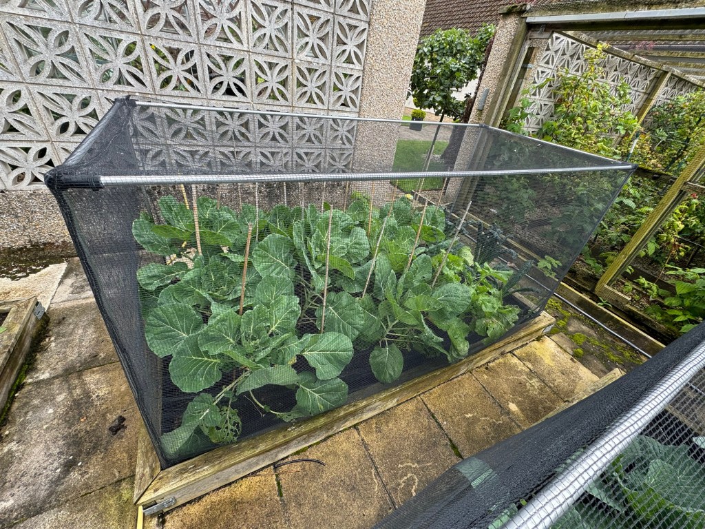 Kale (right of the bed) is from my Christmas Advent seed calendar. It has grown well. The ragged appearance is because we harvested it heavily yesterday and turned it into delicious crispy kale in the Airfryer 😋