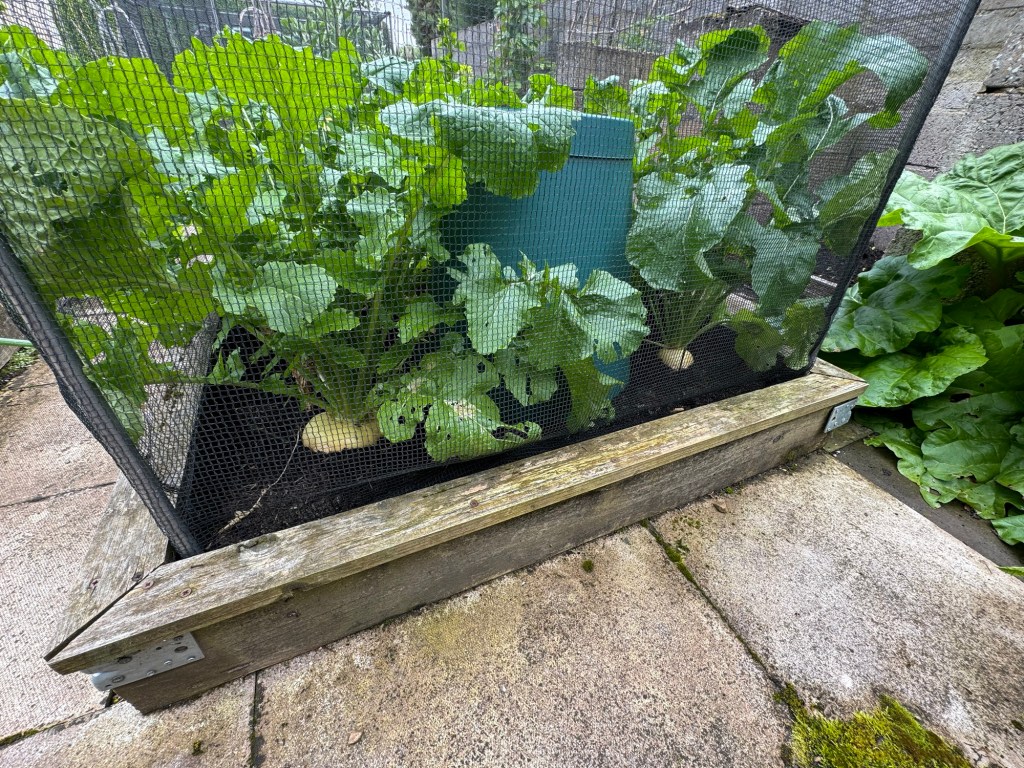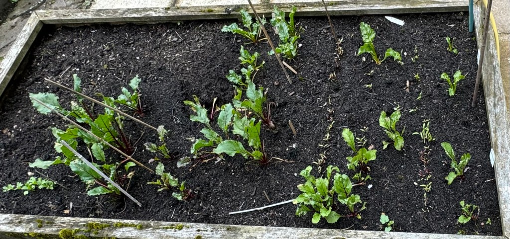 The same thing happening with my beetroot (left) despite them having a much sturdier cage. 🤷♂️. Some of them might be recovering. Time will tell. We would normally be eating beetroot by now! I have re sown further beetroot. This has germinated, but I suspect that they will not ripen in time before winter returns!