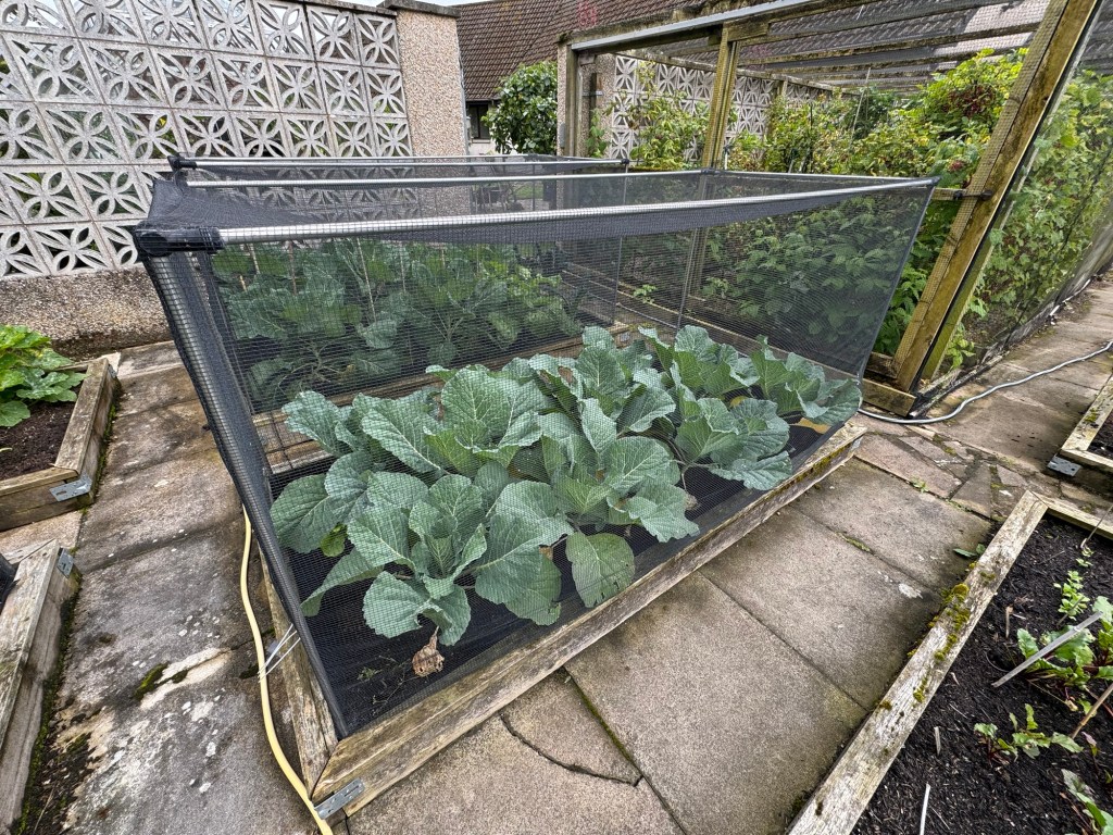 The Winter Cabbages – Tundra are growing well. I have given them a bit more spacing between plants this year. They seem to be appreciating it!