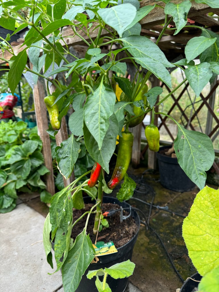 The chilli plant I bought at our local B&Q has also grown up quite nicely. Lots of huge chilli’s forming.