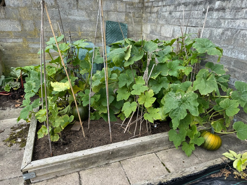 The Courgettes – yellow (right) are looking good. They have been producing heavily and we have had quite a few lovely courgettes from them.