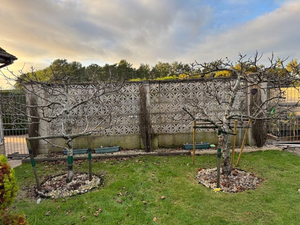 These are the two apple trees (right) after their haircut. It was a bit of a radical prune today (short back & sides!), but they needed a bit of a reshape. 🤷♂️