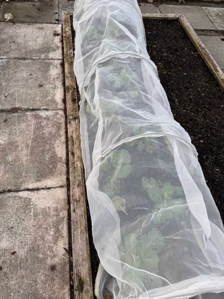 A couple of weeks ago, in a really cold spell, I went outside to harvest a cabbage. The ground was frozen solid, so I couldn’t dig it up. I cut off the cabbage head and retreated inside to make my coleslaw. Only to find that the cabbage itself was deep frozen. Solid! 🧊 My coleslaw had to wait a bit!
