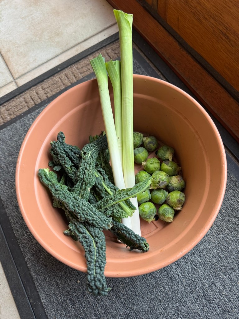Today’s wee harvest. I find it amazing that we are still getting delicious fresh veg from our Allotment at this time of year and in the harshest of conditions.