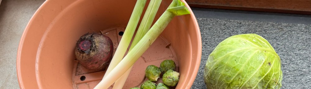Today’s wee harvest. I find it amazing that we are still getting delicious fresh veg from our Allotment at this time of year and in the harshest of conditions.